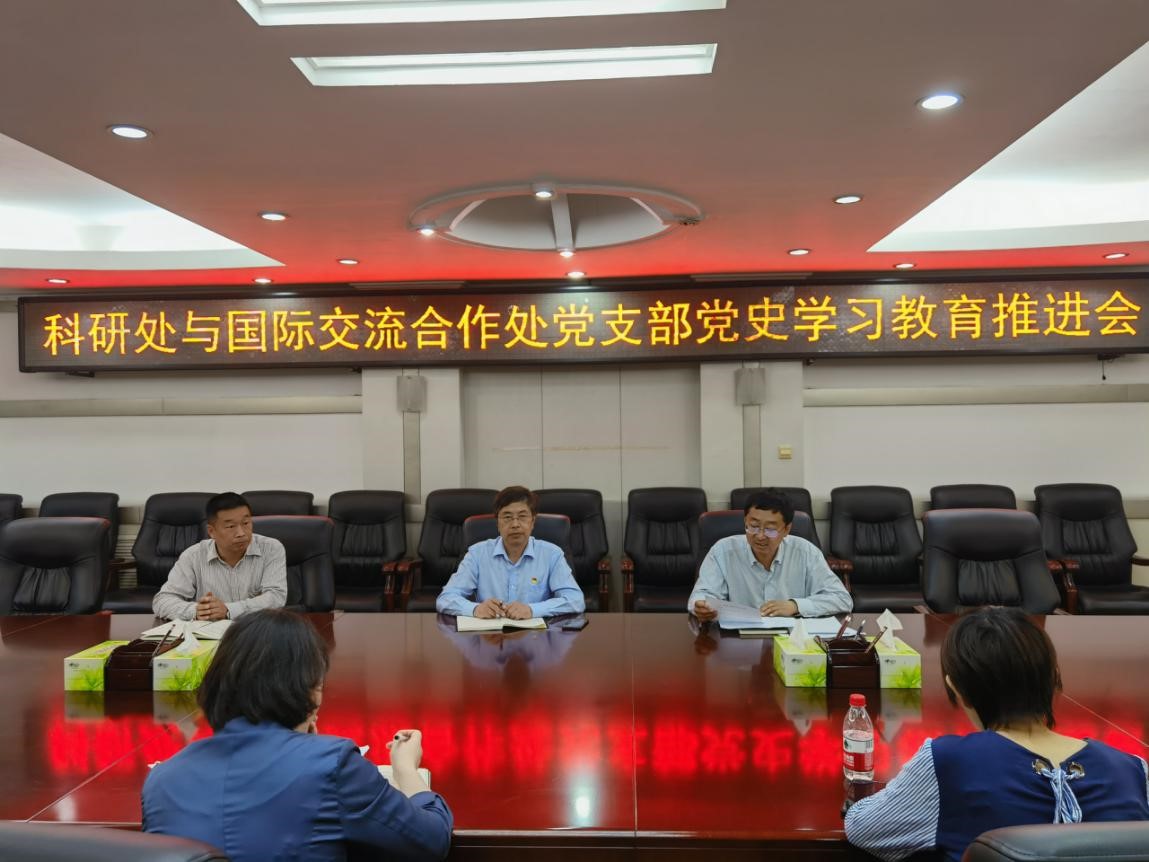 5月20日下午,科研处与国际交流合作处党支部在行政楼二楼会议室召开党史学习教育推进会,副校长万鹏杰以普通党员身份参加。