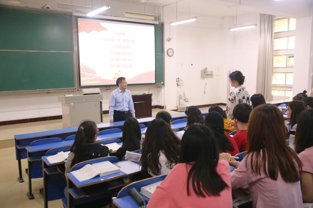课堂上,郭秋平围绕《中国共产党百年历程:经验与启示》这一主题进行了深入讲解,他结合一系列重大历史事件、具体发展数据和最新的科技成果,带领同学们全面回顾了党在百年奋斗历程中所经历的站起来、富起来、强起来三个历史阶段。他通过分析中国共产党的根本宗旨和历史使命、中国特色社会主义理论体系的核心要义、党在各个历史时期开展的一系列有针对性的斗争、运动,深刻总结了党在百年奋斗历程中所积累的拥护伟大核心、高举伟大旗帜、开展伟大斗争三大历史经验。最后,他希望同学们要从党的百年奋斗历程中深刻领悟三大启示:一是中国共产党最伟大,必须坚定正确的政治立场,始终做到“两个维护”,坚持热爱党、热爱祖国、热爱人民、热爱社会主义;二是斗争最紧要,必须躬行,要处理好大与小、多与少、远与近、虚与实、公与私的关系,有针对性地开展斗争、解决矛盾、促进发展;三是选择最重要,必须谨慎,要牢记中国共产党是中国历史的选择,也是中国人民的选择,高举马克思主义和中国特色社会主义伟大旗帜,听党话、跟党走,是当代青年的唯一正确选择。