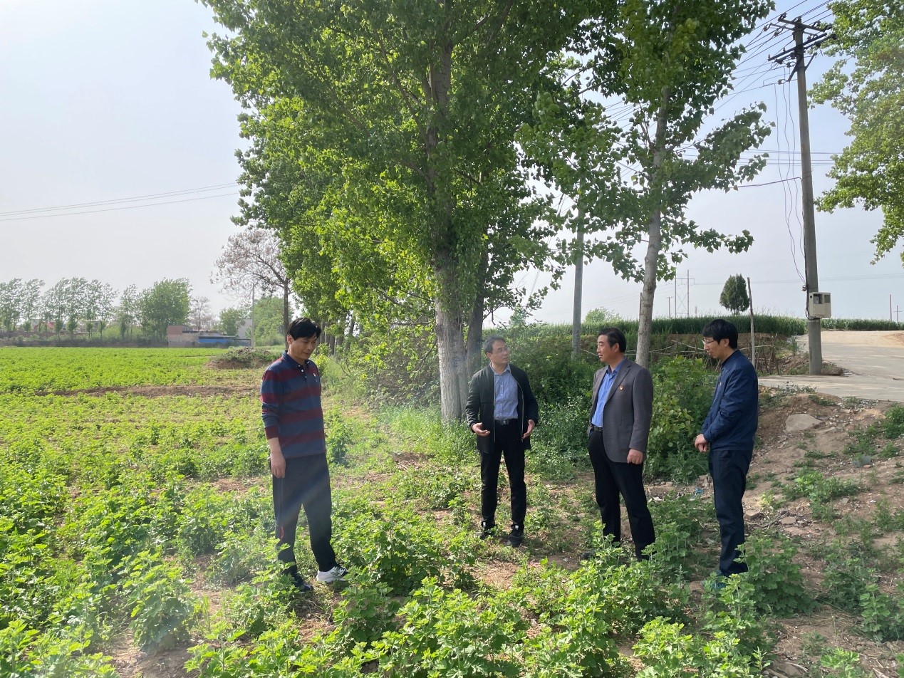 在师良村,吴建军一行实地察看了我校资助的道路绿化项目和100亩艾草种植项目,现在艾草长势良好,将于今年5月份进行第一次收割。