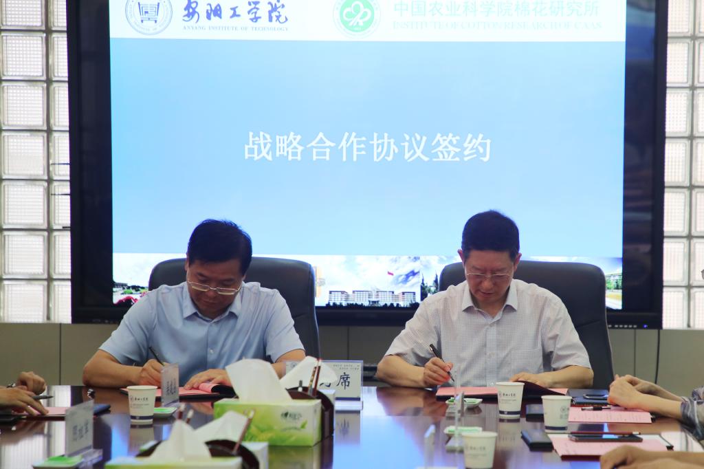 7月12日下午,我校与中国农科院棉花研究所签署战略合作签约仪式在行政楼二楼会议室举行。中棉所所长李付广、副所长宋国立、马雄风与我校党委书记任中普、校长景国勋、副校长万鹏杰、郭秋平等领导共同出席仪式,中棉所部分处室负责人与我校校长办公室、发展规划处、科研处、教务处、生物与食品工程学院等部门负责人参加签约仪式,相关专业教师代表30余人列席签约仪式。万鹏杰主持仪式。