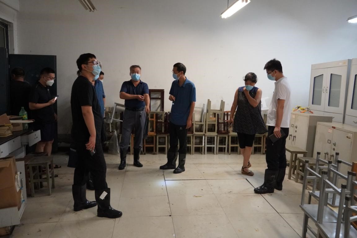 专家组一行在A07号楼地下室现场勘察受灾情况