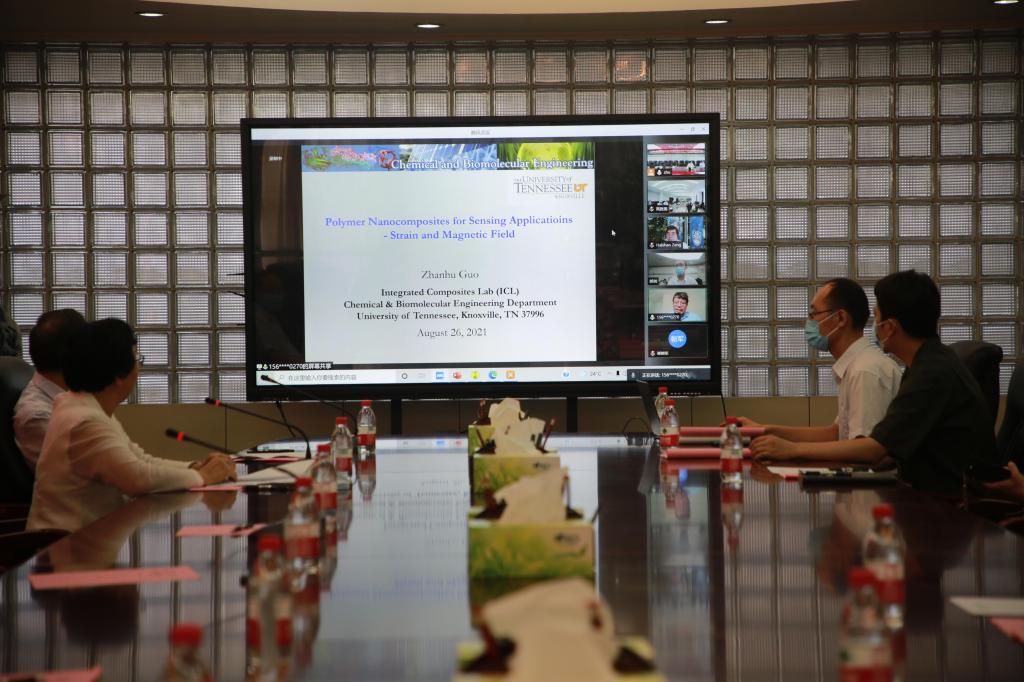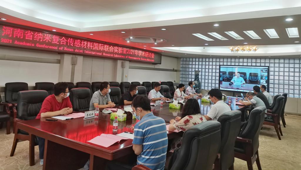 8月26日,河南省纳米复合传感材料国际联合实验室2021年学术研讨会在我校行政楼二楼会议室召开。美国田纳西大学诺克斯维尔分校郭占虎教授、加拿大不列颠哥伦比亚省癌症研究中心曾海山教授、安阳市肿瘤医院周福有教授、郑州炜盛电子科技有限公司副总经理古瑞琴和技术总监高胜国等通过远程视频方式出席会议,副校长万鹏杰在现场出席会议并致辞,科研处、化学与环境工程学院、材料科学与工程学院等部门负责人以及实验室骨干成员在现场参加会议,化学与环境工程学院、材料科学与工程学院教师代表以及郑州炜盛电子科技有限公司技术人员通过线上形式参会。材料科学与工程学院院长、河南省纳米复合传感材料国际联合实验室主任宋海香主持会议。