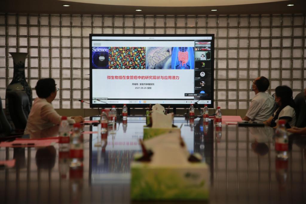 会上,万鹏杰致欢迎辞,对参加会议的各位专家、教师表示欢迎和感谢,并介绍了学校的学科专业、师资队伍、科研平台等基本情况。宋海香介绍了实验室成立以来的研究进展和成果。郭占虎、曾海山和周福有分别作题为《高性能压电传感纳米复合聚合物研究》《原位多模双光子吸收显微镜及其医学治疗应用》《微生物组在食管癌中的研究现状与应用潜力》的学术报告。实验室骨干成员李现常、周忠源、高倩倩、郭尧、王建广、李志涛、魏静静分别汇报了近期的研究工作。