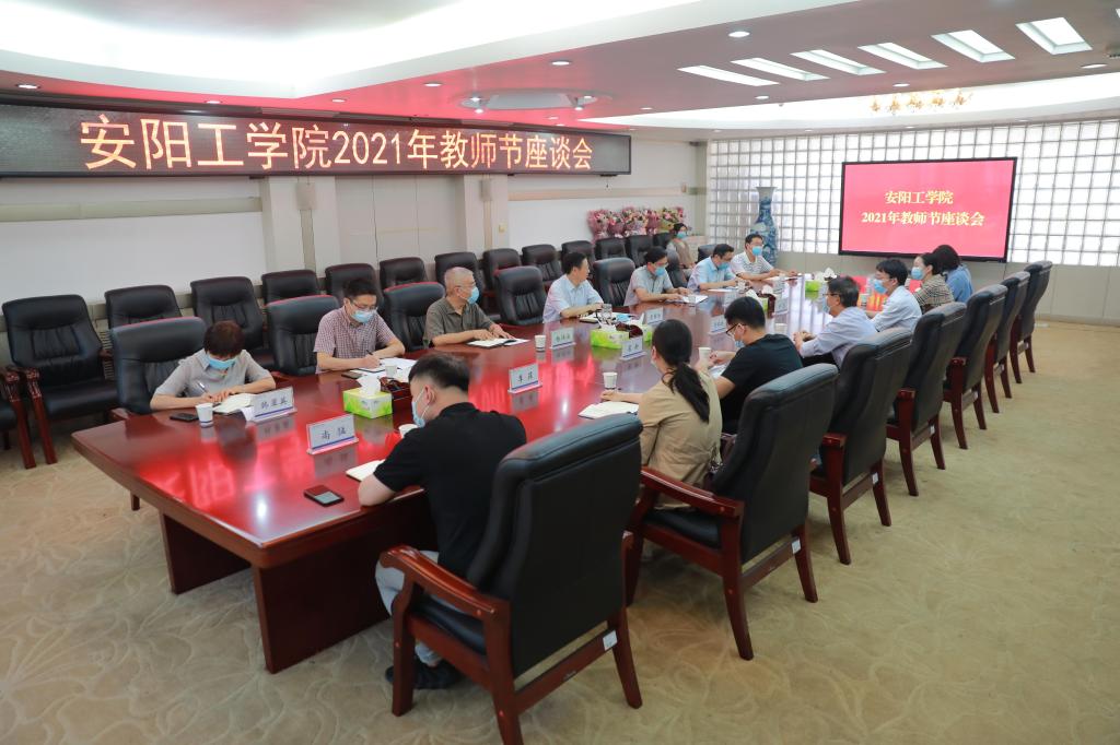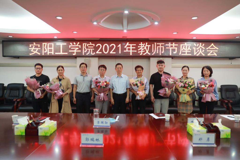在第37个教师节来临之际,为“赓续百年初心,担当育人使命”,激发全校教师教书育人的积极性、主动性,增强教师职业的荣誉感、使命感,9月8日下午,我校在行政楼二楼会议室召开2021年教师节座谈会,校长景国勋、副校长牛晓玉出席座谈会,7名优秀教师代表应邀参加座谈,他们分别是:河南省跨世纪学术和技术带头人、生物与食品工程学院退休教师郭瑞林研究员,国家自然科学基金青年项目主持人、土木与建筑工程学院屈新博士,河南省学术技术带头人、化学与环境工程学院郑勇博士,河南省教育系统教学技能竞赛特等奖、河南省本科高校教师课堂教学创新大赛特等奖、“五一”劳动奖章获得者、机械工程学院教师李菲,“外教社杯”全国高校外语教学大赛河南省赛一等奖获得者、外国语学院教师刘佳,安阳市学术技术带头人、飞行学院尚猛博士,安阳工学院优秀辅导员、生物与食品工程学院教师陈瑞利。教师工作部、校长办公室、教务处、科研处、人事处等部门负责人一同参加会议。