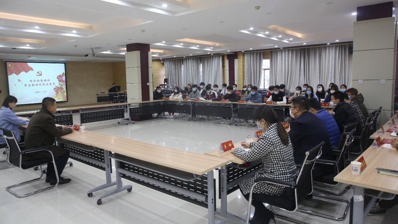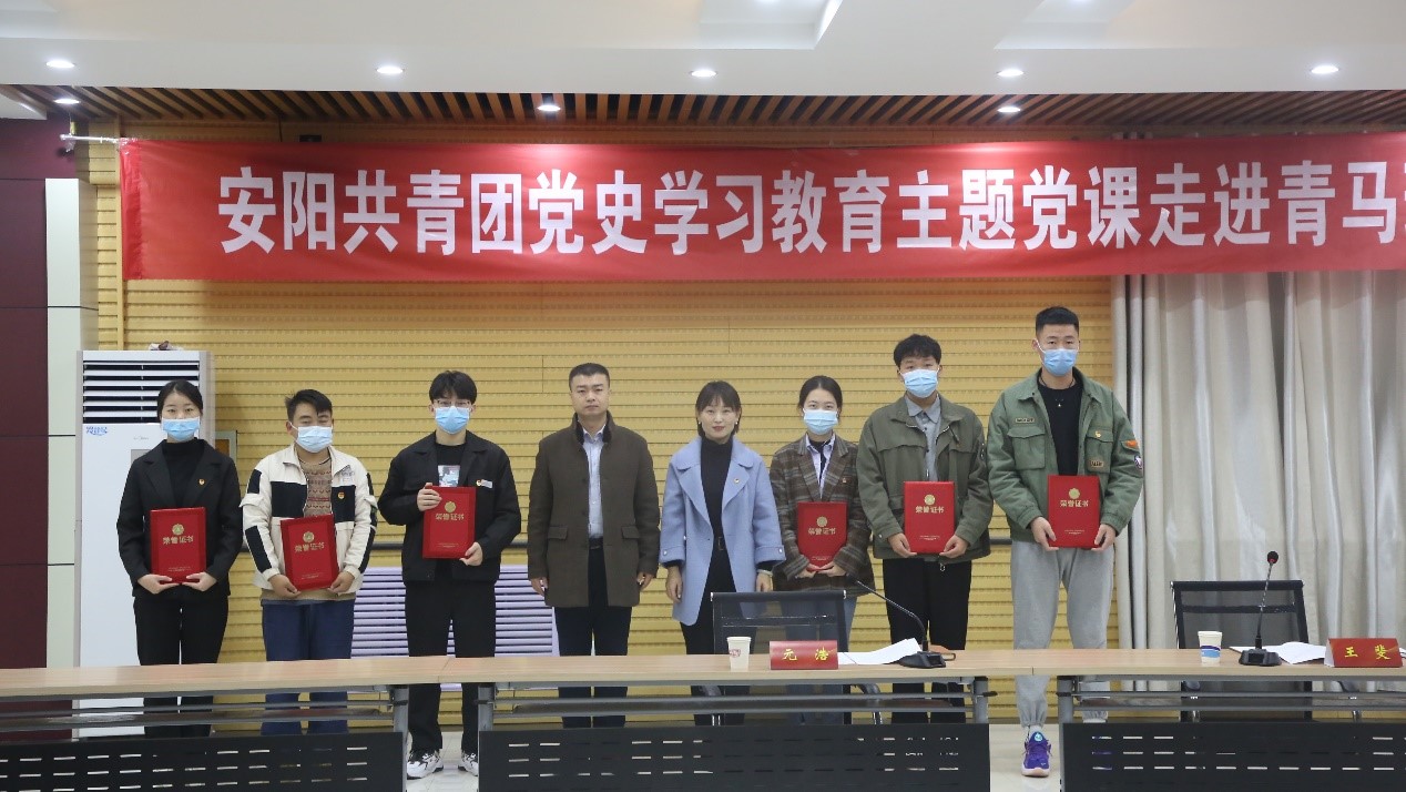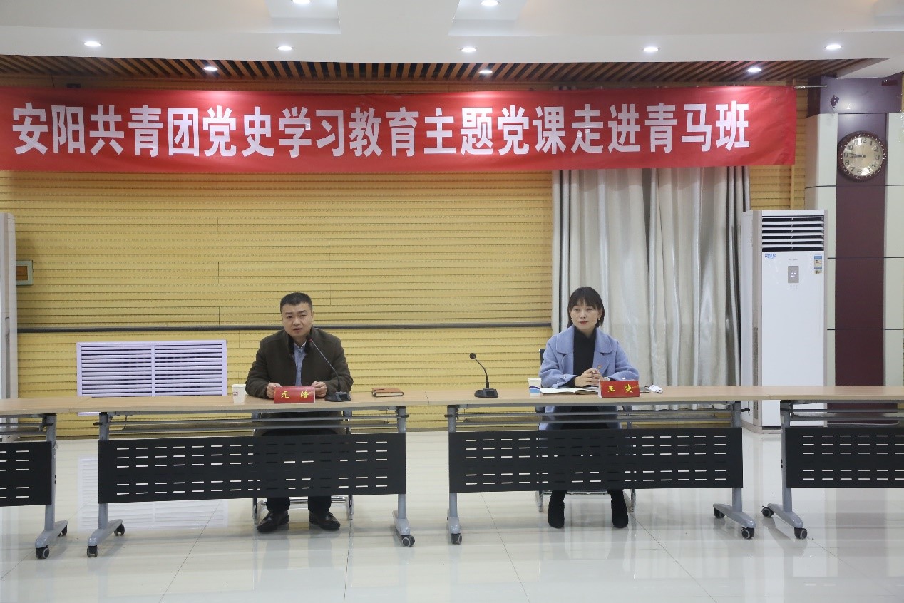 11月12日上午,团市委书记元浩、团市委组织部部长李娇等一到我校,开展”安阳共青团党史学习教育主题党课走进我校青马班”活动,校团委全体工作人员、团委各学生团体代表、“青马班”学员代表共计40余人参加活动。校团委书记王斐主持活动。