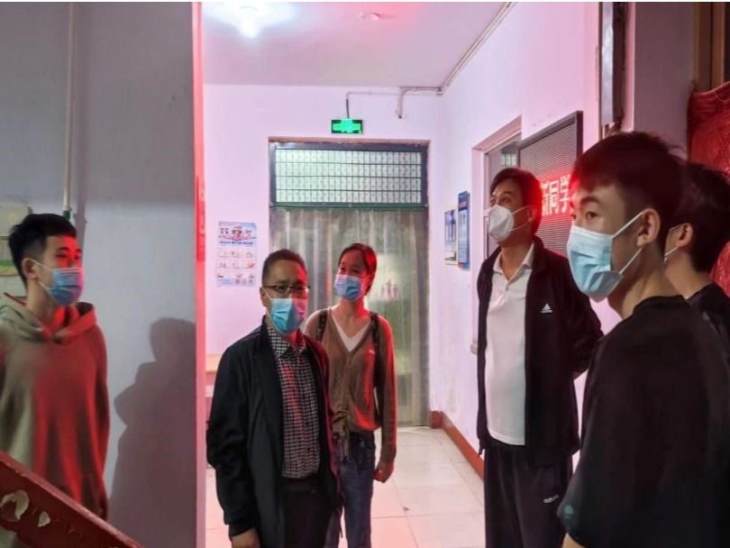 吴建军还看望公寓值班人员和志愿者,并到学生浴池了解有关情况,同时要求大家落好疫情防控各项措施,为广大学生提供优质服务。