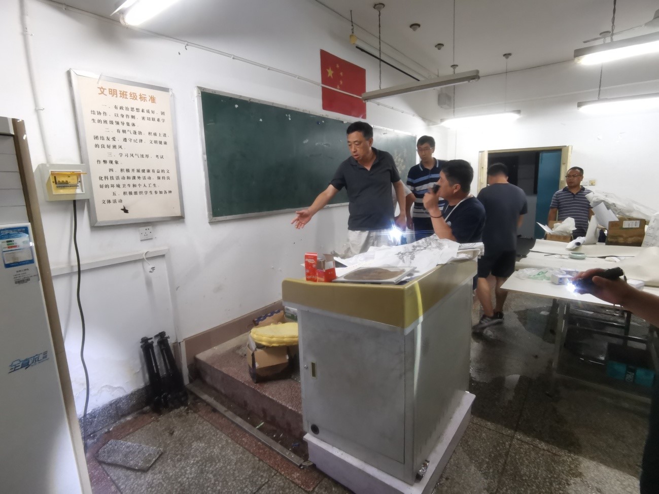 后勤管理处党总支始终把防汛工作作为全年的重点工作之一,闻“汛”而动,积极发挥党组织坚强战斗堡垒作用和党员先锋模范作用,按照《安阳工学院防汛应急预案》和学校防汛工作部署,从严落实落细各项防汛保障工作,加强人员和物资调度,组建以党员为骨干的防汛抢险突击队,对地下室、水泵房、配电室和仓库等重点位置进防汛排涝巡视,全力以赴投身防汛抢险工作中,全力守卫校园安全。