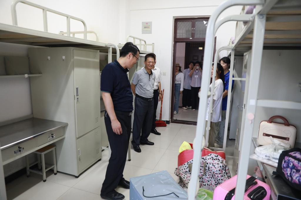 9月9日上午,校长沈记全、副校长蒋文龙带队检查指导迎新报到和校园安全工作。