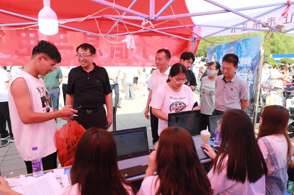 在学校南门,沈记全一行查看了新生报到情况及校门口安全情况,迎新现场氛围浓厚,新生报到工作热情周到、井然有序。沈记全在迎新现场与学生亲切交谈,询问了解报到具体情况。沈记全慰问了迎新工作人员和青年学生志愿者,对他们周到细致的服务工作表示肯定和感谢。