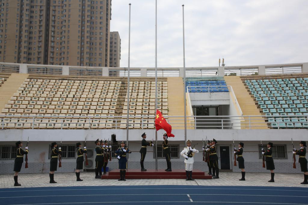 上午9时,在雄壮的国歌声中,鲜艳的五星红旗冉冉升起,全体师生面向国旗,肃立行礼,齐唱国歌。2023级学生军训动员大会正式拉开帷幕。