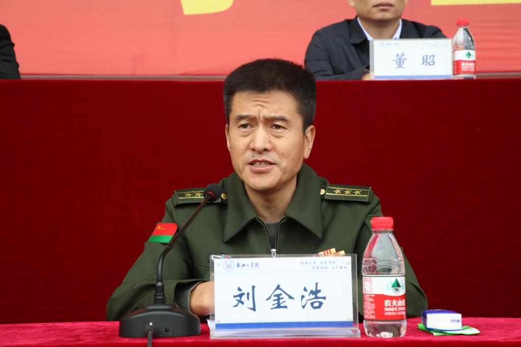 刘金浩代表安阳军分区对我校长期以来重视国防事业、支持军训工作表示崇高的敬意。他对同学们和教官们提出要求,希望同学们掌握必备的军事技能,形成强大的国防后备力量,为保卫祖国贡献出自己的一份力量。