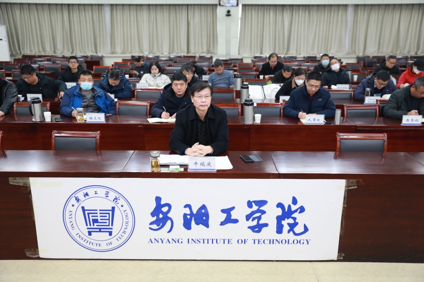 12月13日,在行政楼四楼会议室,校工会主席牛瑞庆主持召开低温雨雪冰冻灾害工作部署会议,学生工作处、教务处、人事处、后勤管理处、保卫处等职能部门负责人,各学院党总支书记参加会议。