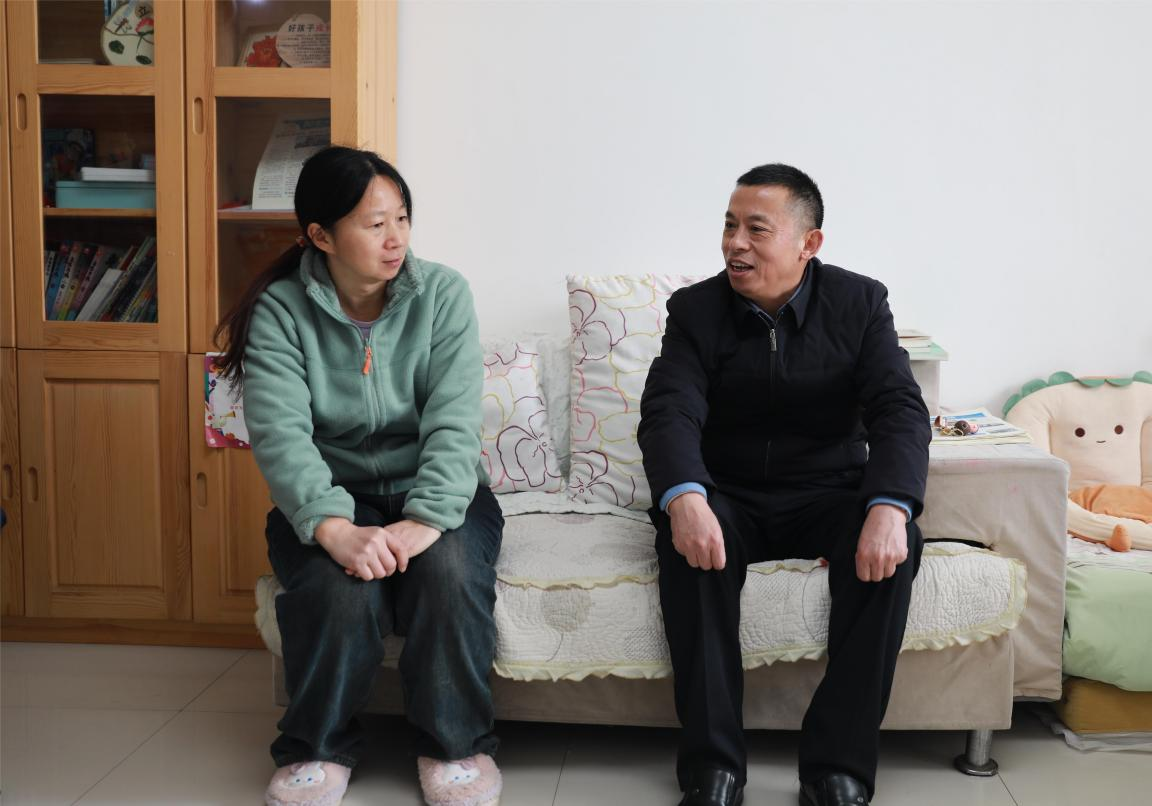 随后,彭仁海一行走访慰问了学校困难教职工彭宏艳老师,彭仁海与彭宏艳老师促膝谈心,详细询问了她的生活状况和工作情况,鼓励她振奋精神、坚定信心,以积极乐观的心态勇敢面对生活中的困难,并感谢她为学校工作的辛勤付出。