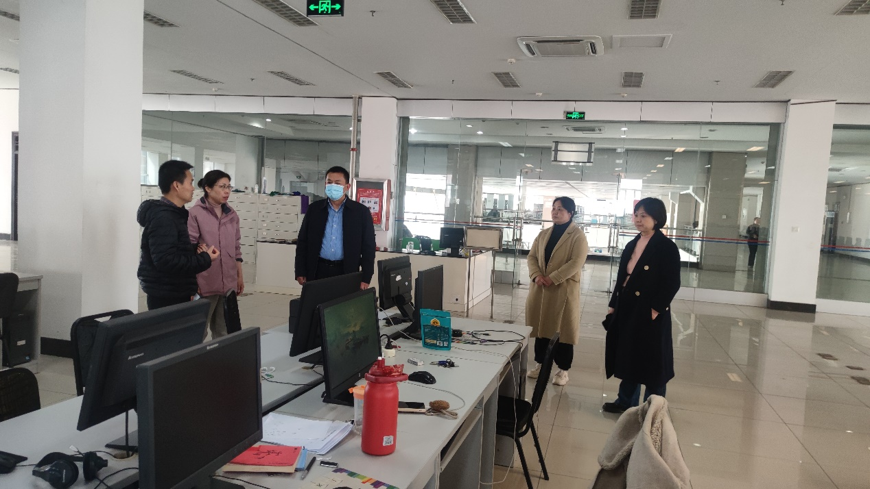 彭仁海首先查看了图书馆地下书库、二至四层公共书库阅览室、一层和五层学生自习室等区域,并对地下图书存放、馆内空间布局、设施配备、学生阅览管理等情况进行了全面了解。随后,在图书馆四楼会议室召开了座谈会。馆长王志杰从基本情况、人员结构、组织架构、馆藏建设、学科服务、目前亟待解决的问题和下一步工作思路等方面进行了汇报。