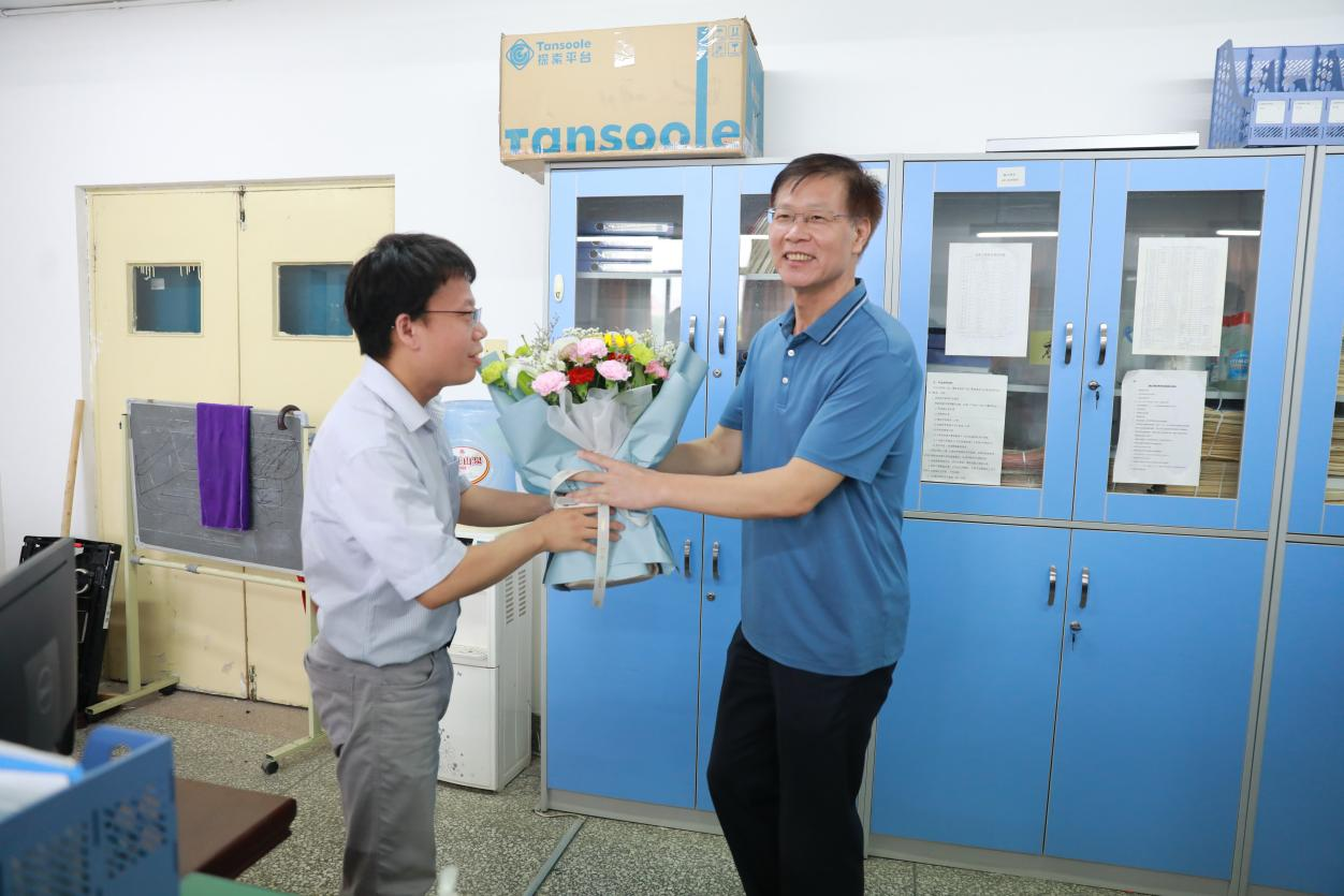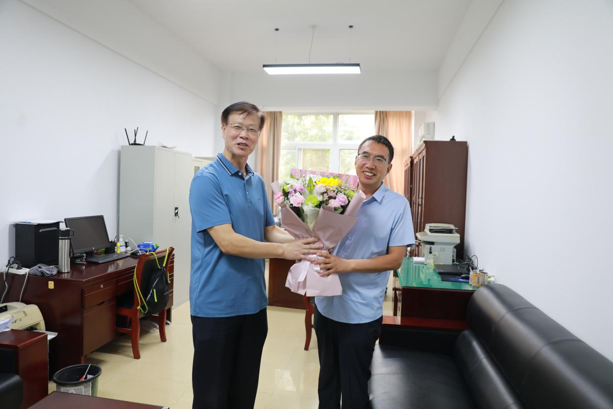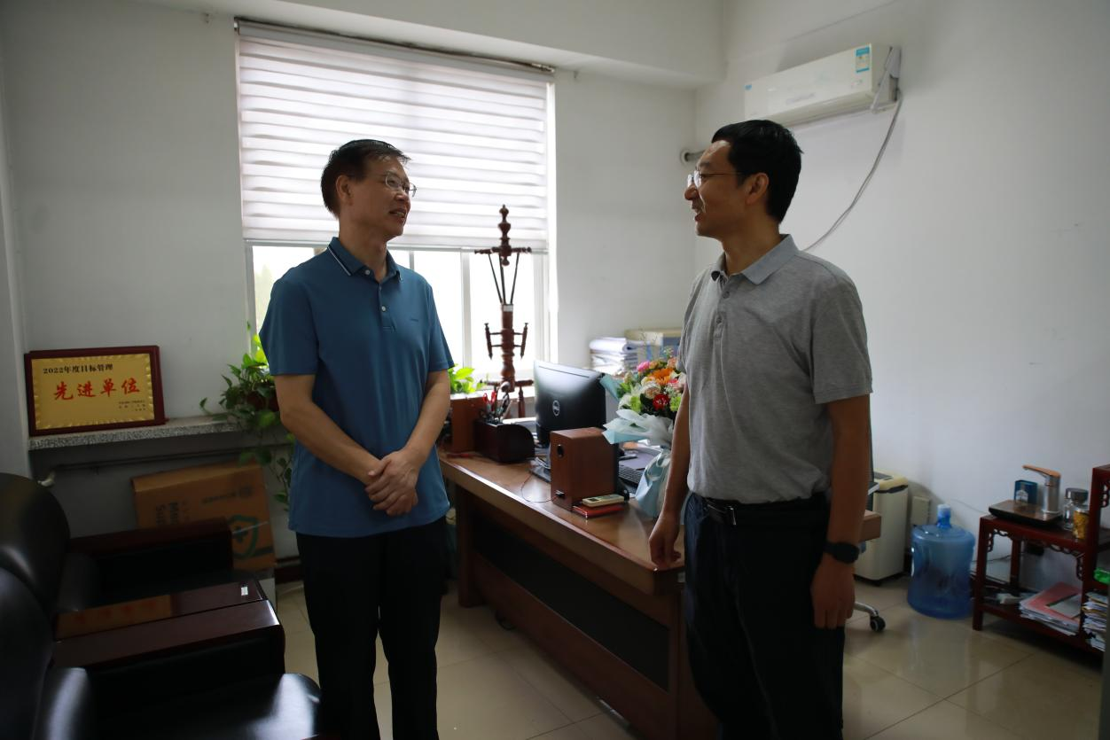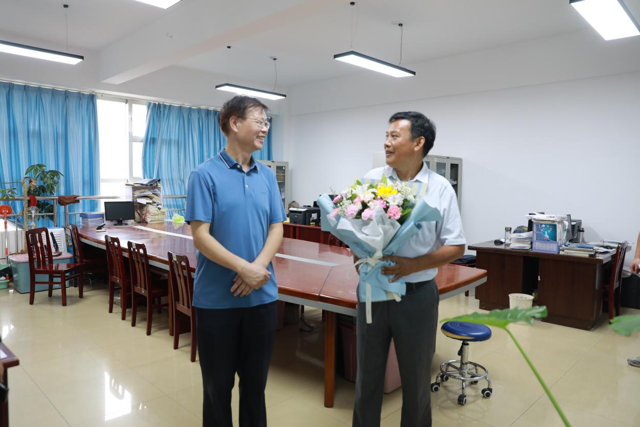 在王双山的办公室,牛瑞庆对他三十九年来在教学和科研上的辛勤付出表示感谢,并鼓励他发挥好“传、帮、带”作用,引领年轻教师积极参与学校建设,培养更多优秀学生。王双山表示,虽然临近退休,但会持续坚守岗位,帮助年轻教师尽快成长,全力支持学校各项事业的发展。
