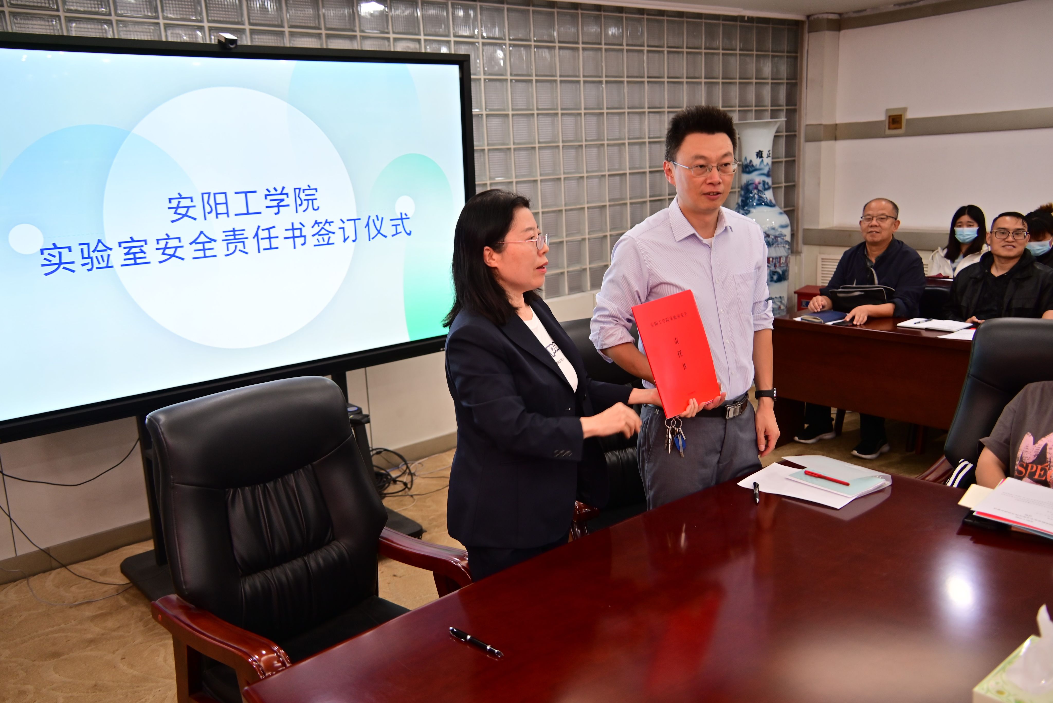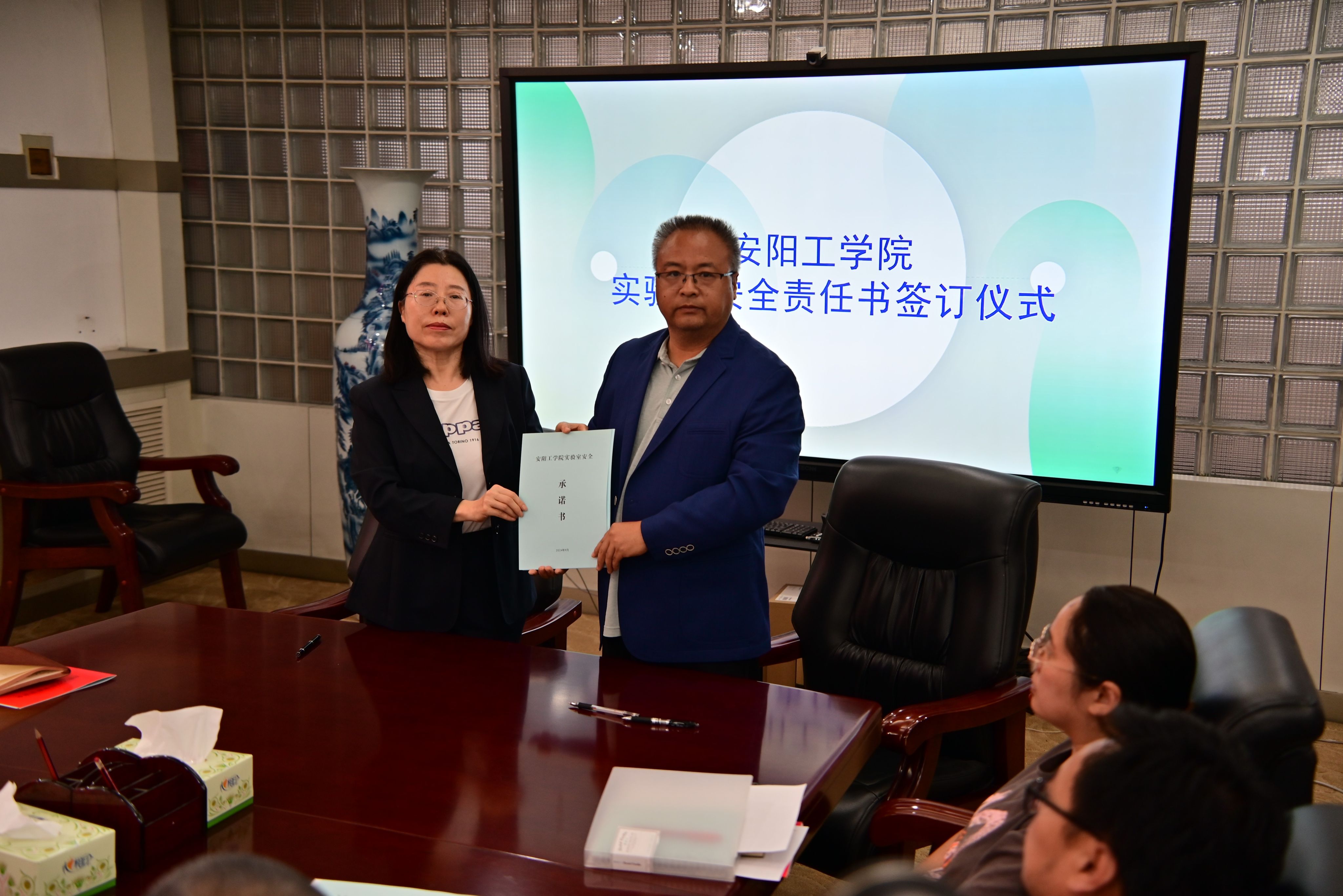 会议集中学习了习近平总书记关于安全生产的重要论述批示。教务处副处长兼实验管理中心主任赵亮对我校2024年实验室安全文化宣传月各项活动内容进行了详细介绍。教务处处长李正斌对实验室安全检查过程出现的问题进行了总结并提出了整改要求。赵卫兵宣布安阳工学院2024年实验室安全文化宣传月正式启动,并与各院(部)签订了《安阳工学院实验室安全责任书》和《安阳工学院实验室安全“每日八问”承诺书》。