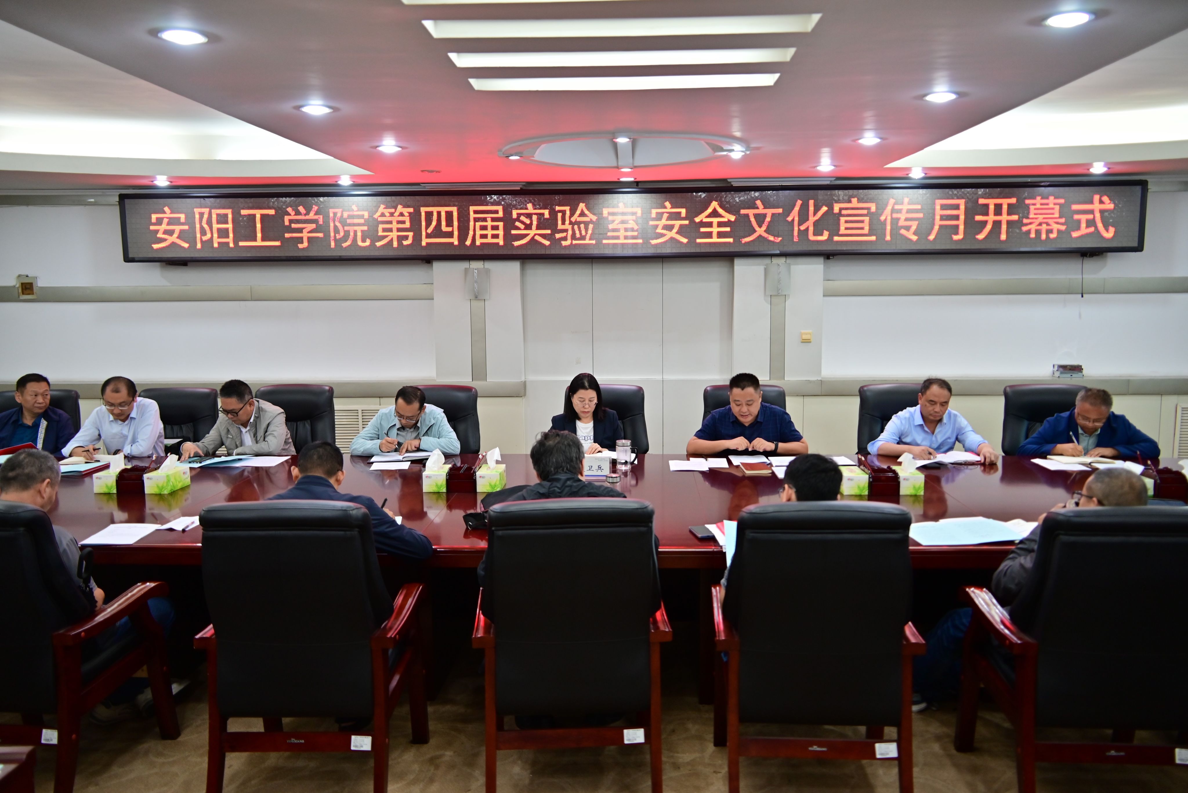 为切实加强全校实验室安全管理工作,积极构建安全和谐、稳定有序的校园环境,9月30日下午,我校在行政楼二楼会议室举行“安阳工学院2024年实验室安全文化宣传月活动开幕仪式”。教务处(实验管理中心)、科研处、保卫处、工程训练中心等相关部门负责人及各院(部)院长(主任)、实验中心负责人参加会议,副校长赵卫兵主持仪式。