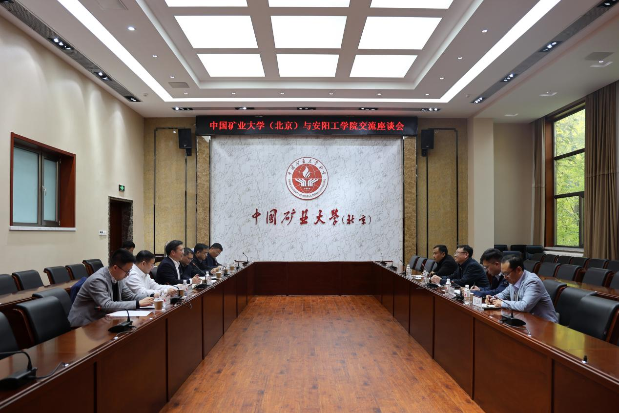 在中国矿业大学(北京),校长刘波对我校一行表示热烈欢迎,详细介绍了中国矿业大学(北京)的办学历史及人才培养、学科建设、科学研究、平台建设、师资队伍建设等方面情况,并介绍了学校稳步推进世界一流能源科技大学建设相关规划、举措。沈记全介绍了我校本科教学、专业调整规划、航空办学特色、学科建设、硕士授权单位建设等方面情况。沈记全表示,中国矿业大学(北京)聚焦国家能源科技需求,服务碳中和战略部署,取得了大批高水平创新性科研成果,为国家能源安全保障、矿产资源高效开发、地质灾害防控等关键领域,做出了卓越贡献,赢得了社会广泛赞誉和业界高度认可,希望通过此次交流,分享中国矿业大学(北京)特色学科专业建设、高端人才引进、校企合作等方面的办学经验,助力我校高质量发展。会上,双方分别就学科建设、全程导师制、人才引进、学生创新等方面进行深入讨论,介绍了典型经验做法。