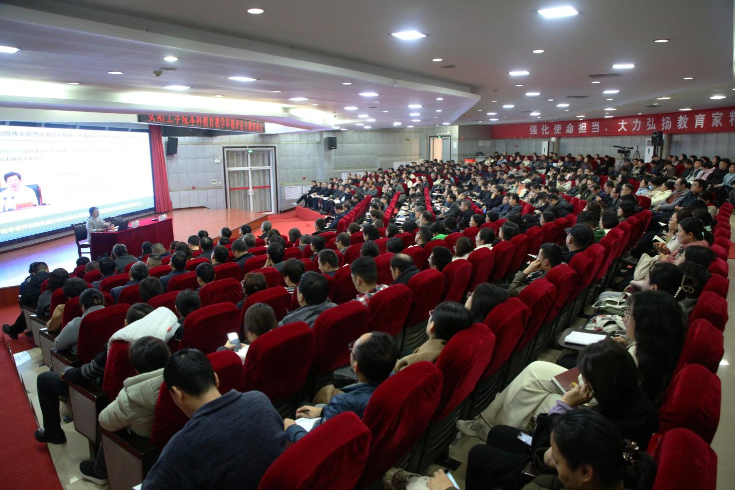 为进一步推进我校本科教育教学审核评估工作,深化对新一轮审核评估工作的认识,11月20日下午,我校在学术交流中心召开本科教育教学审核评估专题培训会,邀请河南省高等教育教学评估管理服务中心主任祝玉华教授作《领悟要义科学谋划重在建设推动学校高质量发展》的专题报告。全体校领导、全体中层干部、党政部门的全体科级干部、各院(部)教研室主任、团总支书记、教学秘书、骨干教师等400余人参加了培训会,副校长赵卫兵主持会议。