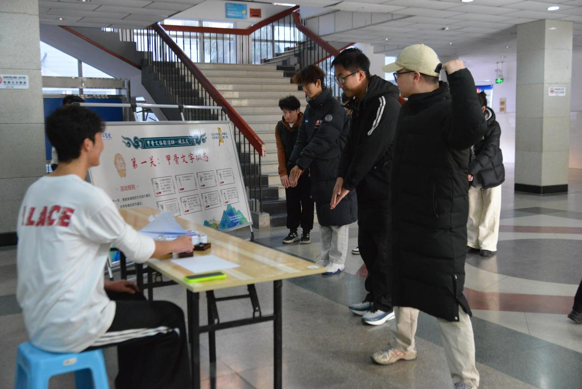 活动设有篆刻甲骨文艺术展以及甲骨文字拟态、甲骨文字书写、甲骨文识字三个体验环节,通过游戏通关的方式,激发学生对传统文化的学习兴趣,传承和发展以甲骨文为代表的中华优秀传统文化,让中华文化展现出无穷魅力和新时代风采。