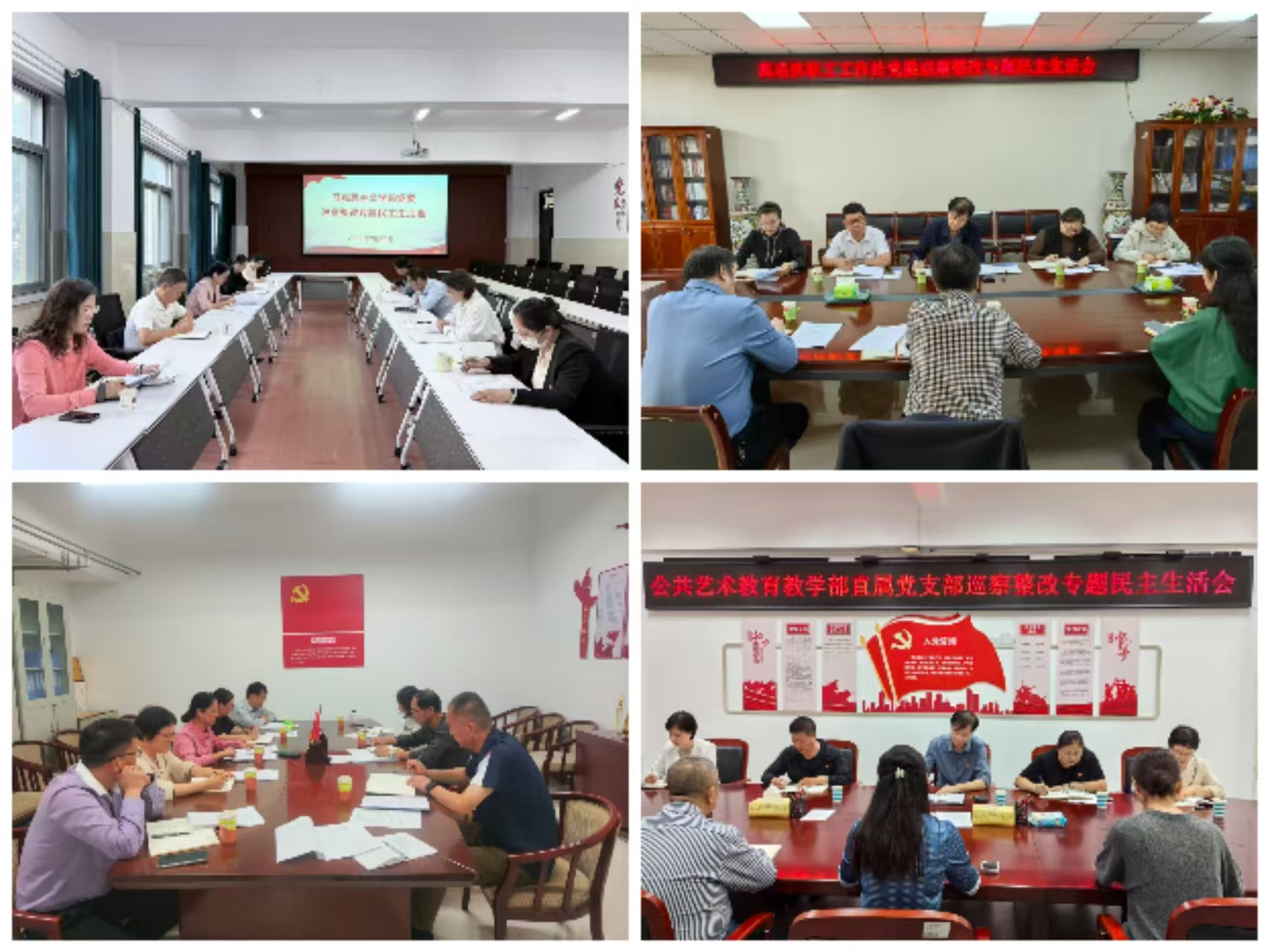 根据巡察工作要求,近日,马克思主义学院党委、离退休职工工作处党委、体育教学部党委、公共艺术教育教学部直属党支部分别召开巡察整改专题民主生活会。校党委副书记牛瑞庆,校纪委书记王红艳带领党委组织部、校纪委、巡察办、巡察组有关同志分别到会指导。被巡察党组织书记分别主持会议,党员领导班子成员参加会议,非党员领导班子成员列席会议。